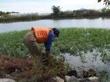 ▲環境生態学科 「水質調査のようす」