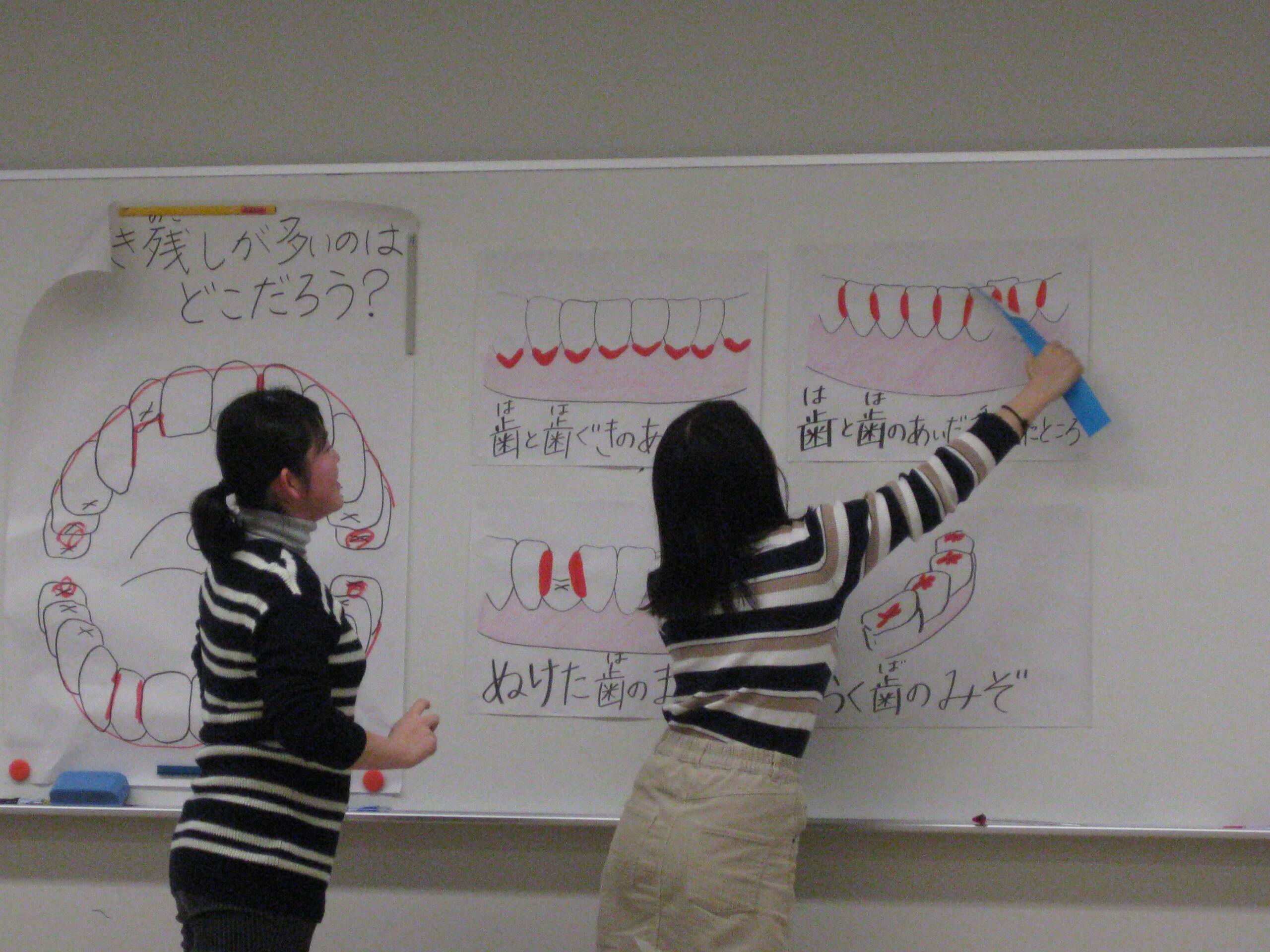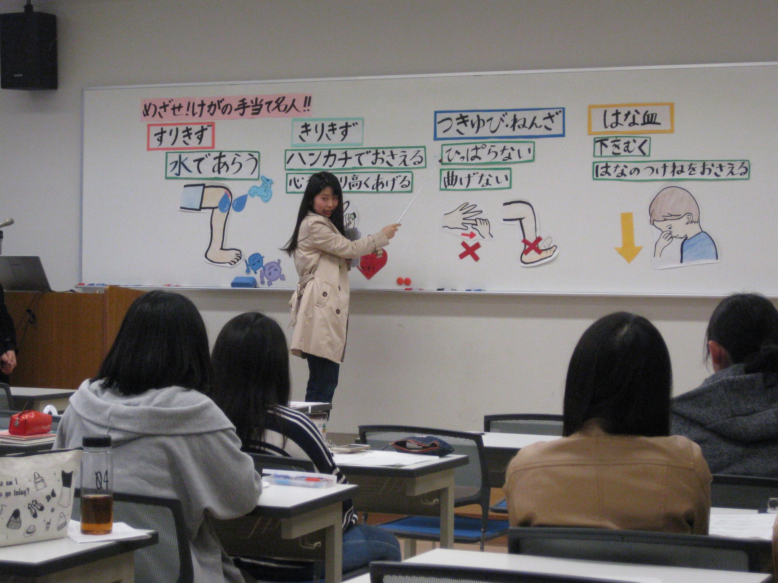 今年度も教職課程の学生が教育実習に向けて、小学生を対象とする授業を想定して授業案や教材を自分たちで作成し模擬授業を行いました。授業を受ける児童の発達段階や健康上の課題をしっかり捉えて1つのテーマで授業を行うことはとても難しかったと思いますが、児童の関心を捉えつつ、理解を深めて貰えるように、今まで講義で学んだことを取り入れつつ工夫を重ねて、とても明るい雰囲気で行うことができていました。