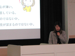 平成30年12月15日(土)2~4時限目に、教育実習を終えた4回生による交流会・発表会が行われました。 教職を目指す本学学生が一同に会し、教育実習を終えての学びについての意見交換や代表者による発表会が行われました。交流会では教科別・教科横断別により活発な情報交換が行われました。この会には3回生も出席し、3回生にとっては実習に向けた準備につながり、4回生は実習を振り返り自己の課題を見つける充実した時間となりました。