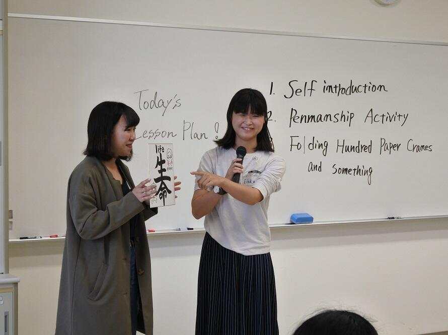今年は、『看護英語(選択科目)』の授業で、習字や折り紙を行いました。