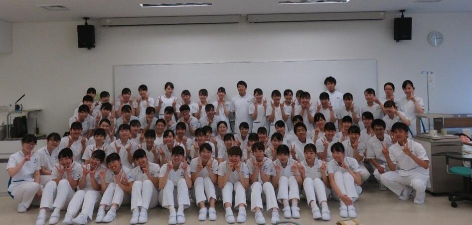 最後には、これから協力して、一緒に看護を基礎から学んでいく仲間とポーズ!!とてもまぶしい素敵な笑顔です。今日感じた嬉しさと緊張を忘れず、4年間頑張って下さいね!
