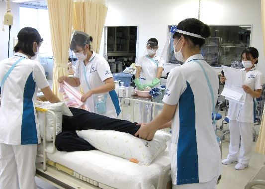 2020年8月17日(月)~8月28日(金)の2週間、人間看護学部2回生70名を対象とした基礎看護学実習Ⅱが行われました。今年は、新型コロナ感染症拡大予防のため、残念ながら学内での実施となりましたが、全員毎日元気に登校し、無事に実習を終了することができました。