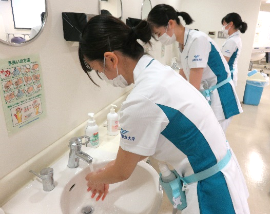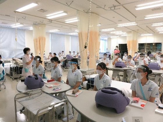 2020年8月31日(月)~9月4日(金)の5日間、人間看護学部1回生70名を対象とした基礎看護学実習Ⅰが行われました。今年は、新型コロナ感染症拡大予防のため、残念ながら学内での実施となりましたが、全員毎日元気に登校し、無事に実習を終了することができました。