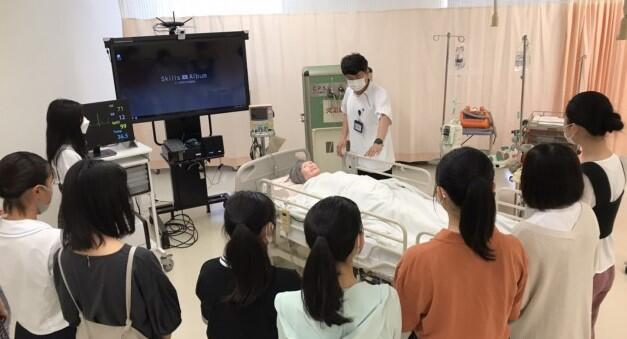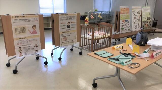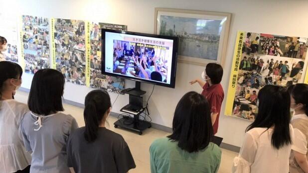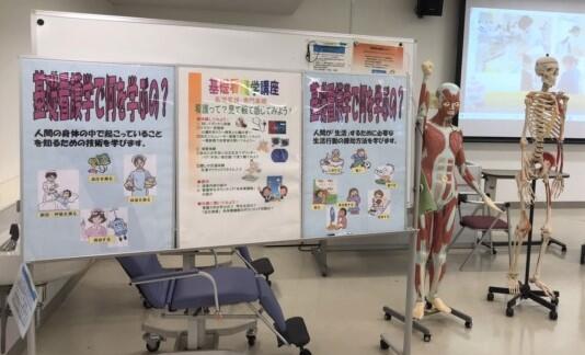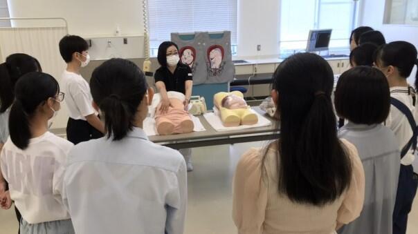 実際の授業場面をイメージできるように、どの教室も工夫を凝らした展示をしていました。参加した高校生の皆さんは、各教室に展示された演習モデル人形や掲示物を見学し、説明を興味深く聞かれていました。
