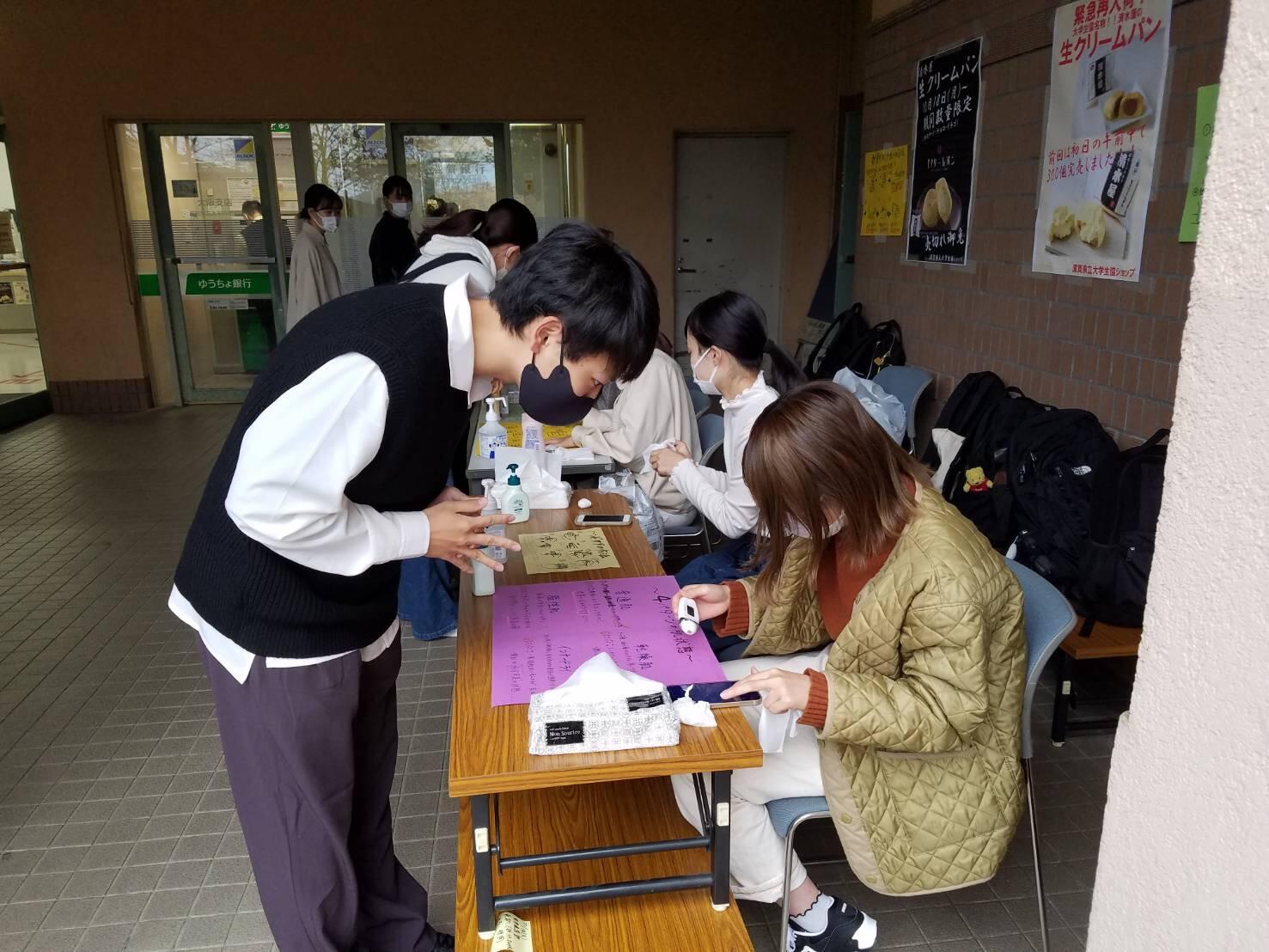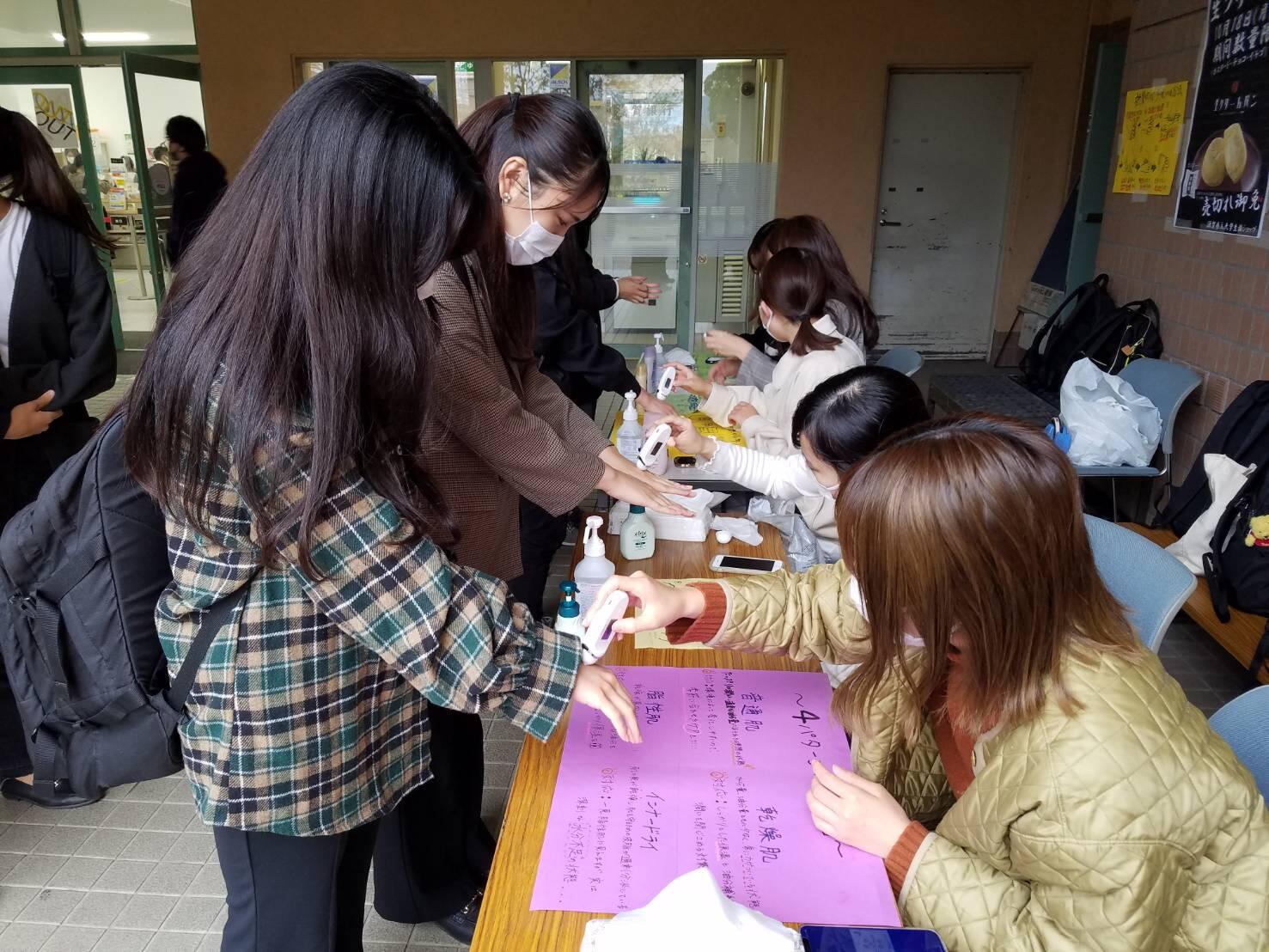令和3年10月19日(火)、滋賀県立大学にて近江楽座「未来看護塾」の学生たちがこれから訪れる冬に向けて学生・教職員の乾燥肌チェックを行い、冬の乾燥肌を防ぐためのスキンケアについて説明しました。