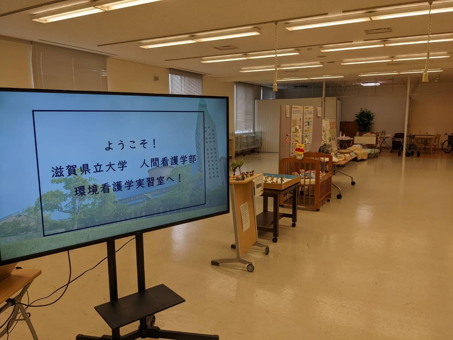 実習室では、大学での授業のイメージがつくように授業で用いるモデル人形や福祉用具などを展示しました。