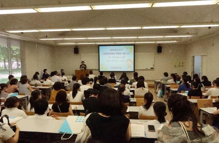 酷暑の中、多くの受験希望者の皆さんが本学人間看護学部のオープンキャンパス会場にお越しくださいました。