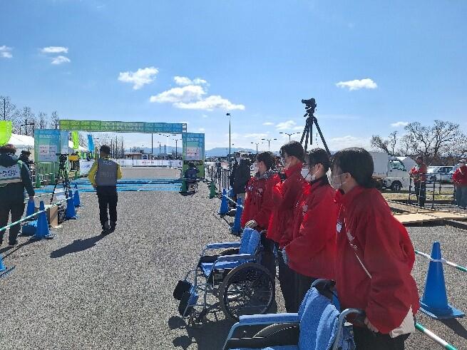 学生たちは救護所等で医師・看護師・トレーナーのスタッフらの指示のもと、体調不良のランナーの方々の移送や看護の手助けに奮闘していました。