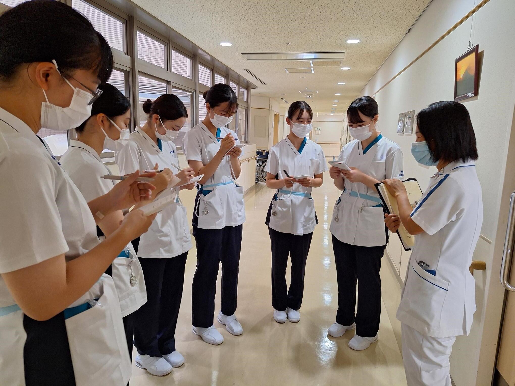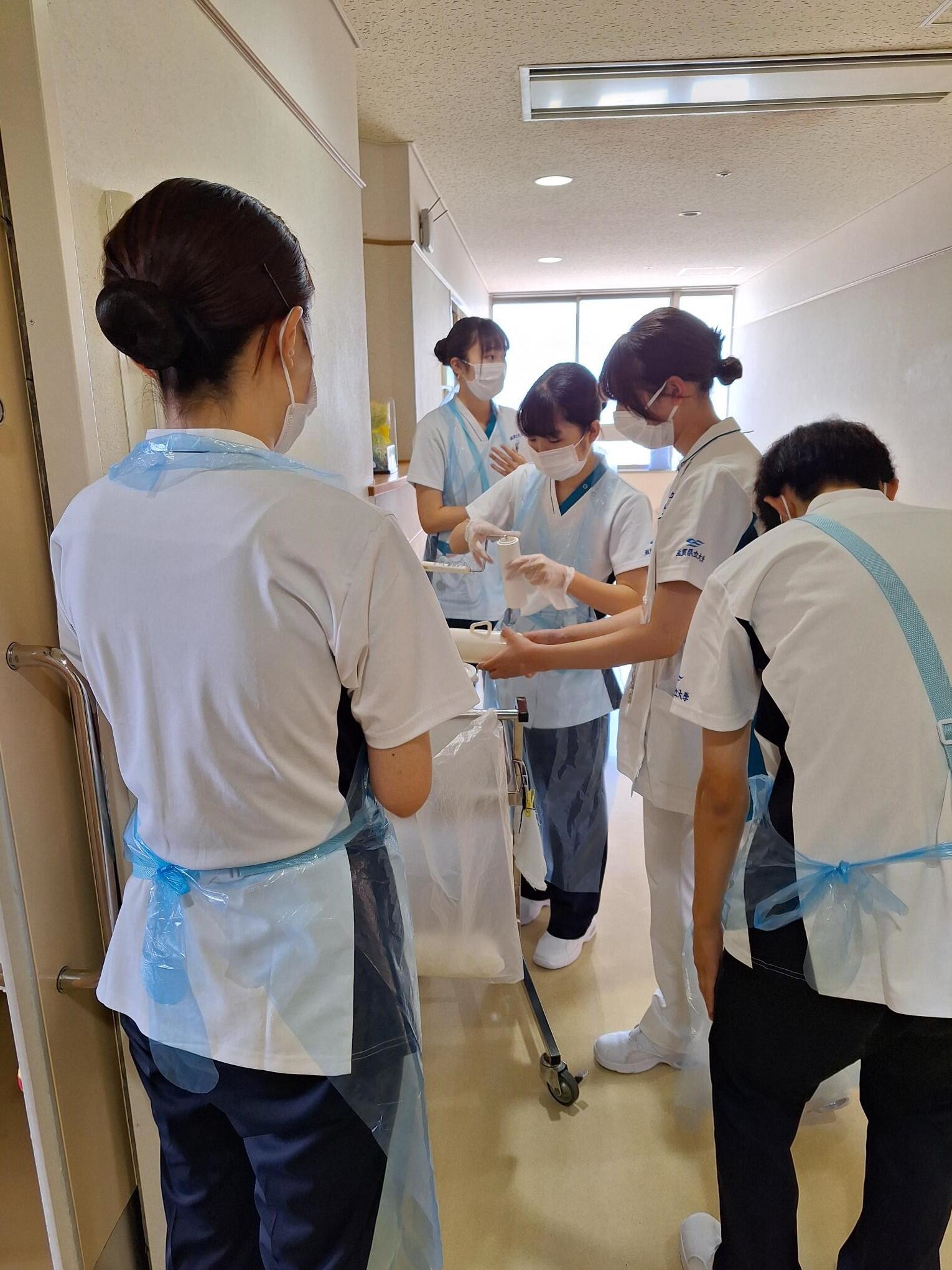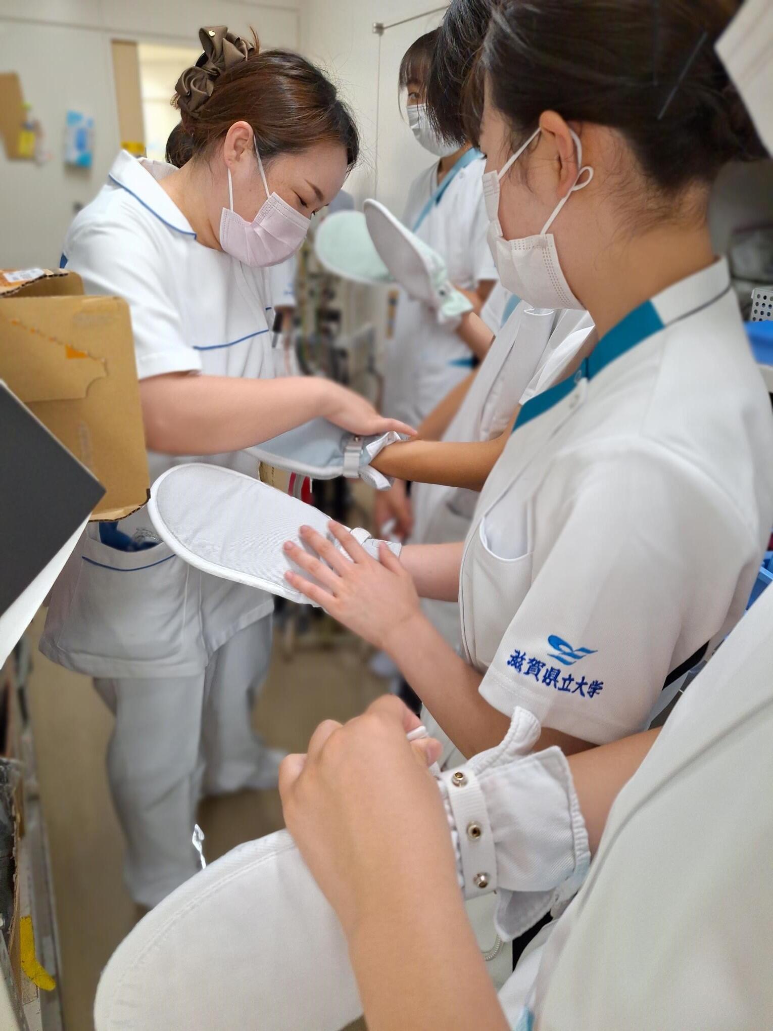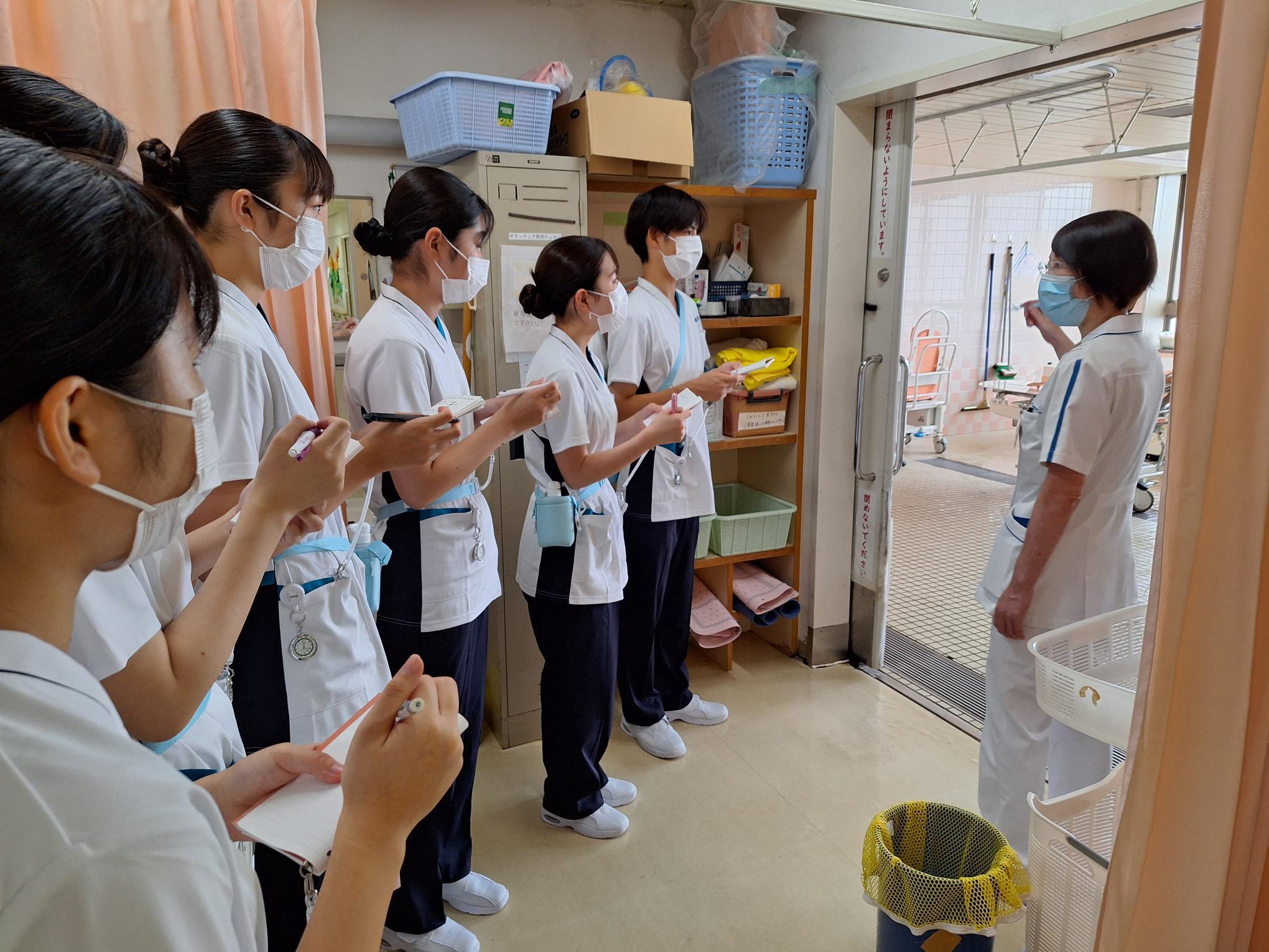 8月19日から1週間、基礎看護学実習Ⅰ(1年生)、8月26日から2週間、基礎看護学実習Ⅱ(2年生)が市立長浜病院、長浜赤十字病院、友仁山崎病院の3施設にて行われました。1年生は初めての病院実習で不安と緊張の中、笑顔で元気に実習に参加していました。2年生は患者さんと真摯に向き合いながら、患者の健康問題の解決のため看護実践に臨んでいました。実習期間中、実習施設(病院)の看護部や病棟の看護師の方々から丁寧な指導と温かいご支援を頂きました。臨床での貴重な経験を今後の学習に生かしてほしいですね。(写真は長浜赤十字病院での実習の様子)
