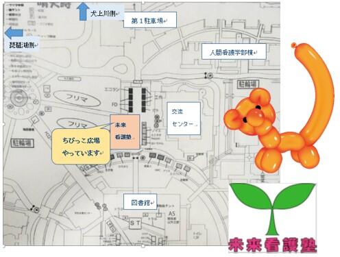 未来看護塾は、今年も「ちびっこ広場」を開催します!! 学生たちが、ちびっこたちのために心をこめて、「アートバルーン」を作ります(無料)。そのほか、スライム作り、わなげ、魚釣りのコーナーをはじめ、「ワニワニパニック?!」という新たな企画も準備しています。どうぞお気軽にお立ち寄りください。