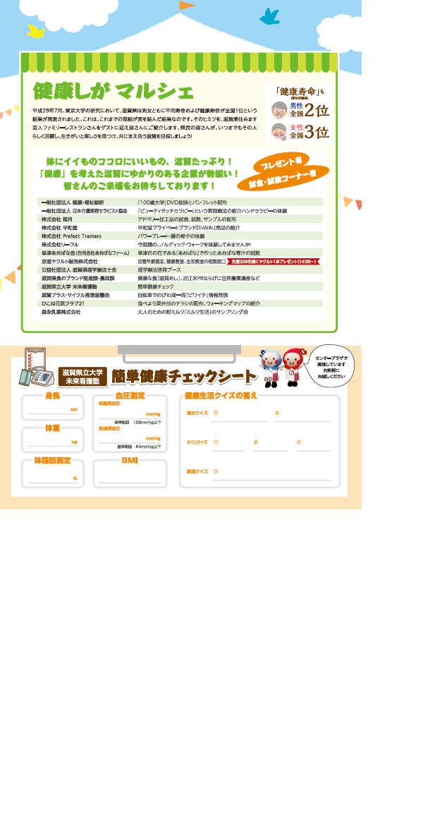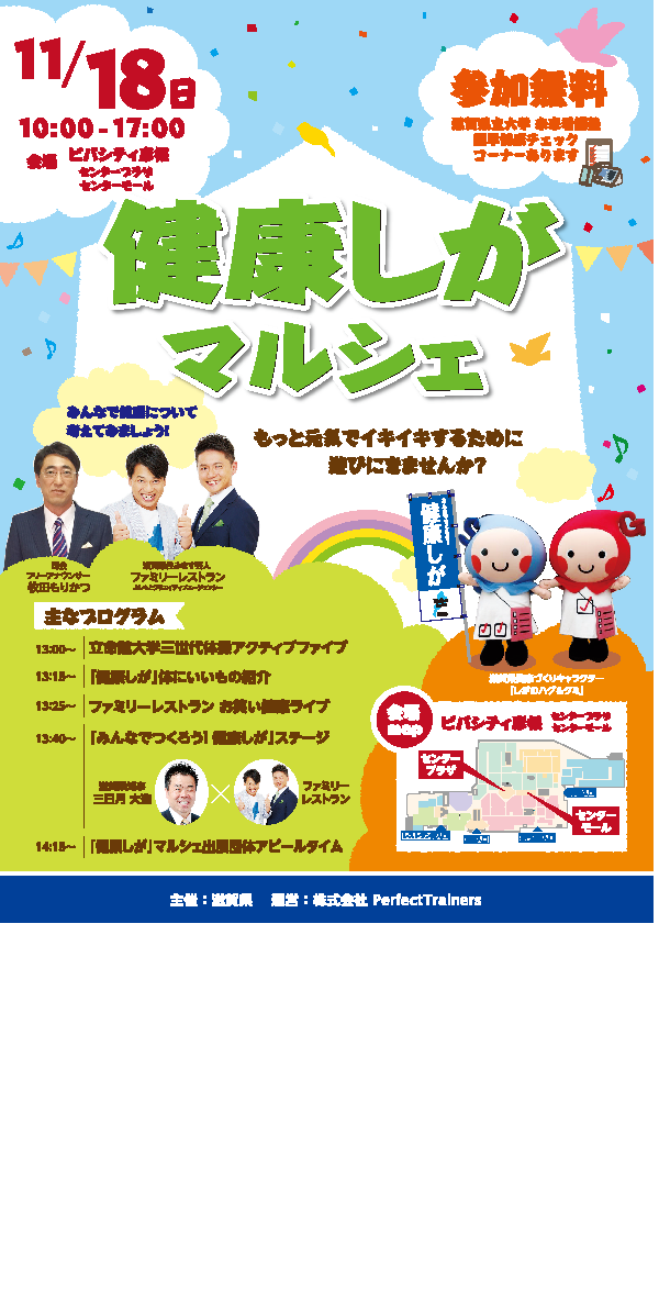 未来看護塾が滋賀県の健康イベント「健康しがマルシェ」に参加し、「応援!生き活き健康生活」を行います(11月18日)!!