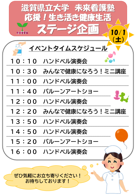 滋賀県立大学近江楽座の未来看護塾「応援!生き活き健康生活」のイベントを開催のご案内