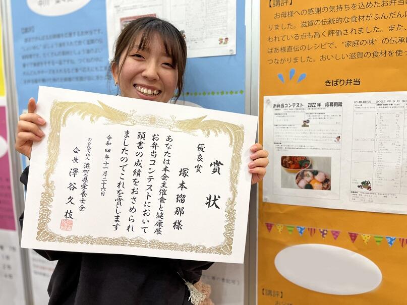 公益社団法人滋賀県栄養士会主催のお弁当コンテスト2022で、人間文化学部生活栄養学科2回生・塚本瑠那さん考案の「きばり弁当」が優良賞を受賞しました