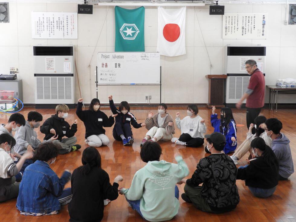PA(プロジェクトアドベンチャー)と呼ばれるアドベンチャー教育の手法を用いて、グループとしての責任、協力、協働などを自ら学ぶとともに、個人・グループの成長を促し、参加学生同士の交流を図る目的で33名が参加しました。