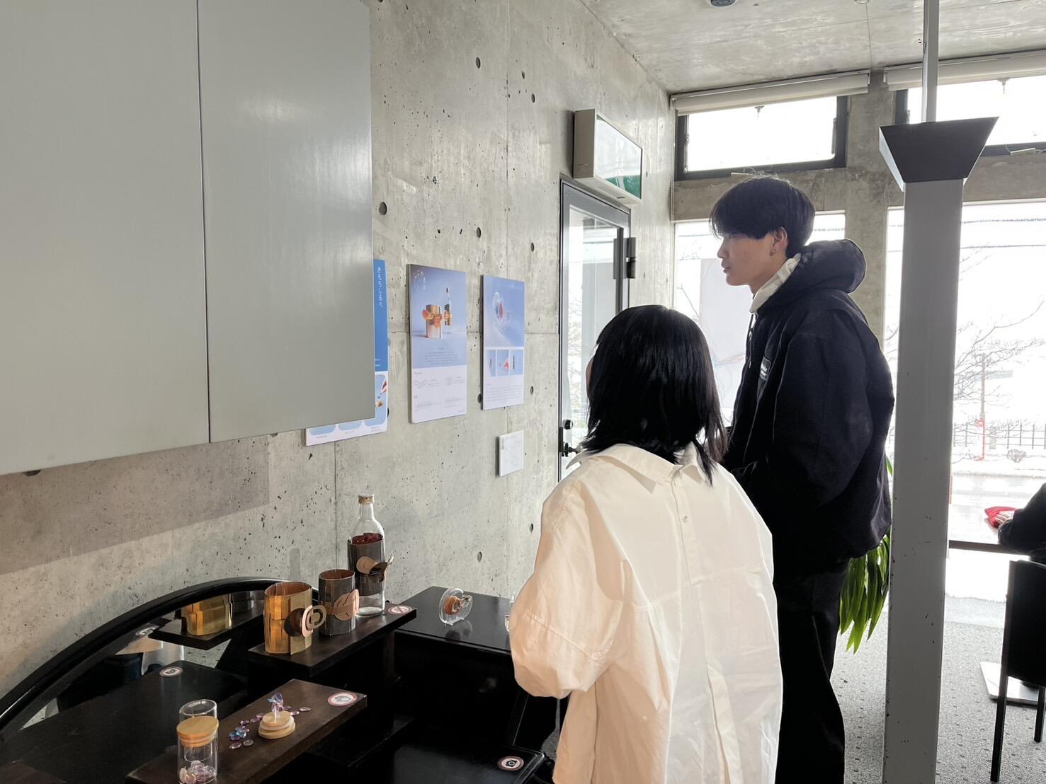 会場は、作家や異業種など様々なヒト・モノ・コトとコラボすることをコンセプトにもつライフスタイルショップ「湖・Labo」の2階ギャラリーです。企業と学生のコラボの場、学生の学年間、学部間のコラボの場として企画提案から会場レイアウトに至るまで議論を重ね、総合的に計画してきました。