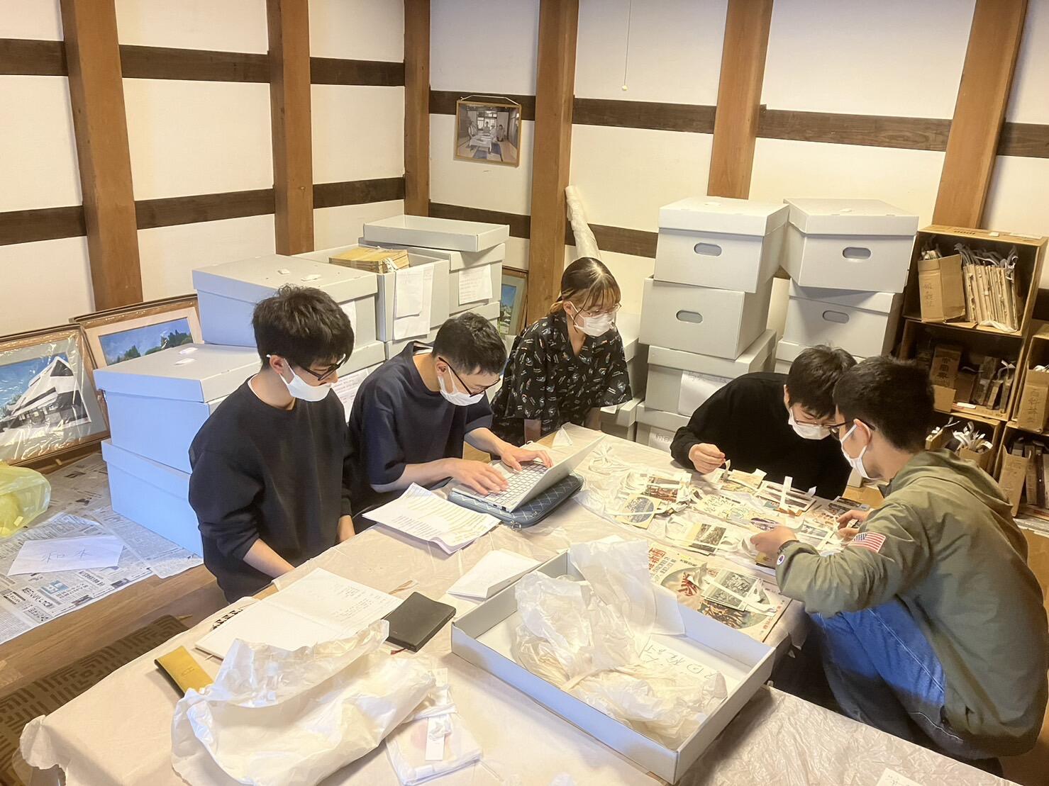 スチューデント・ キュレイターズによる古絵葉書等の資料調査・整理の様子