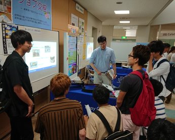 「製造業以外の企業にも来てほしい」という昨年度の参加者アンケートの声に応え、今回は、人気の放送業界から「びわ湖放送株式会社」、また、金融機関の「滋賀中央信用金庫」にもお越しいただきました。他に、本学と関わりの深い滋賀県内の優良企業の「新江州株式会社」、「東レ・カーボンマジック株式会社」にもご出展いただきました。