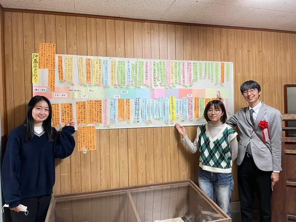 近江楽座の学生が琵琶湖に浮かぶ有人島、沖島の資料館の開館に活躍しました