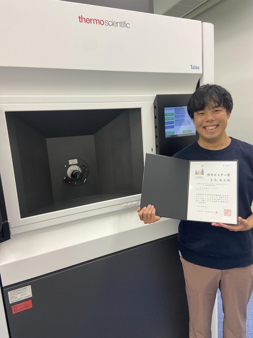 大学院工学研究科材料科学専攻の星島颯太さんが日本金属学会で優秀ポスター賞を受賞しました